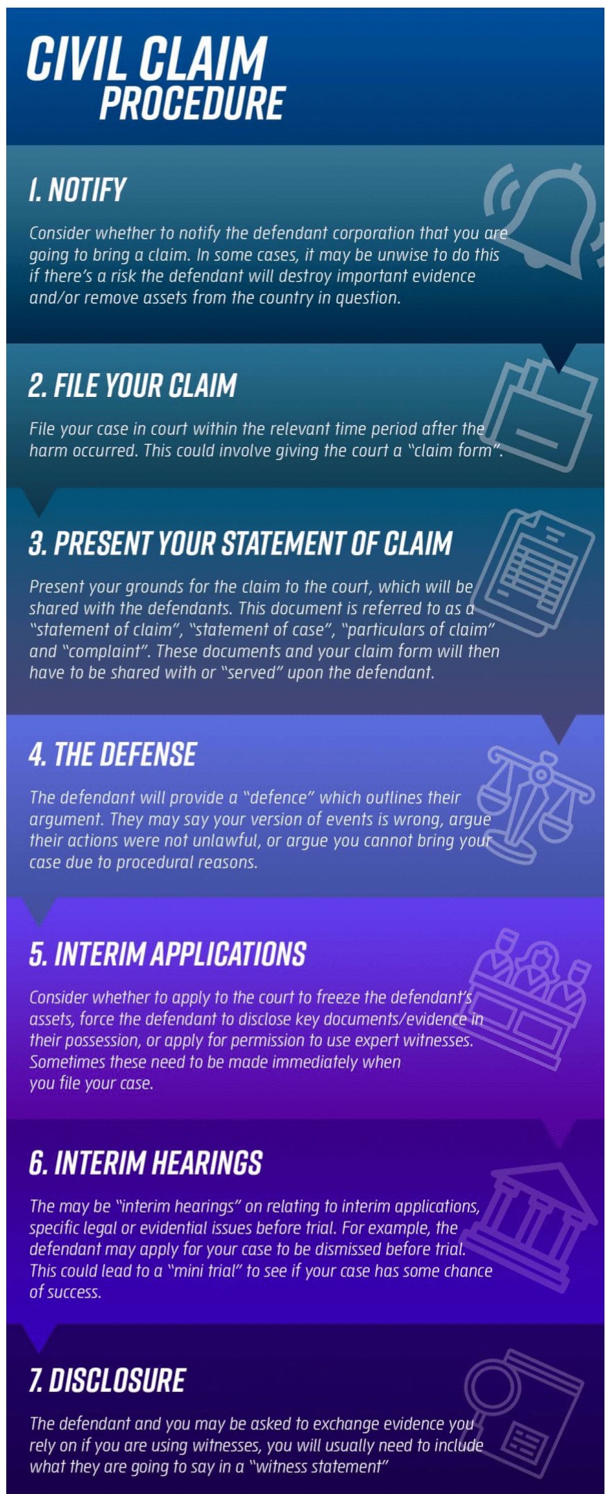 Here are some general points of procedure that you may have to follow to pursue a civil claim: