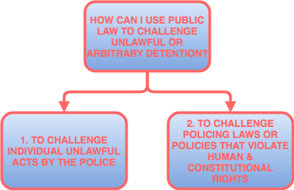This applies to the actions of the police, who are agents of the state who work within public authorities (i.e. the police service). For that reason, it is often possible to challenge unlawful or arbitrary arrests on public law grounds.