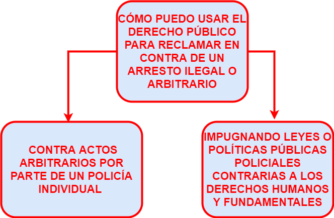 Esto se aplica a las acciones de la policía, quienes son agentes del estado que trabajan como parte de una autoridad pública (es decir, el servicio de la policía). Por esa razón, a menudo es posible impugnar detenciones ilegales o arbitrarias por motivos de derecho público.